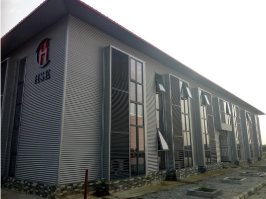 华创钢结构工程公司综合办公楼,钢结构建筑,面积 2000 平米,分二层,一层 办公,二层住宿。 The integrated office building of Huachuang Steel Structure Engineering FZE, a steel structural building, area 2000 square meter, consisted of two stories, the ground floor is for office and the first floor is for living.